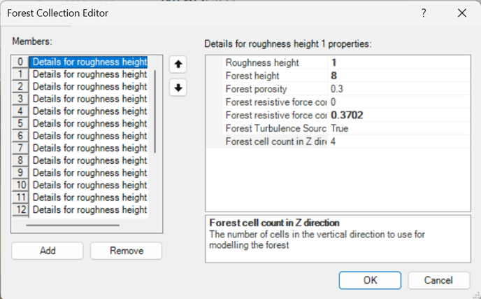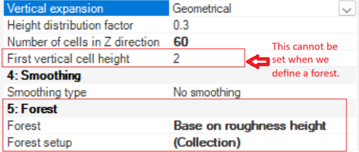 Note that when we define a forest and set vertical expansion to geometrical, first vertical cell height will be set automatically. But sometimes when we define a forest and then change vertical expansion method, this option can be set in the WindSim desktop. Remember that once we define the forest, the height of the first vertical cell cannot be set. The solution is just turn the forest off and on again.