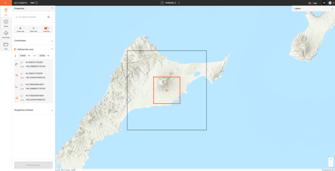 Choosing a refinement area of 10'000 by 10'000 meters, the total model including the buffer area is 30'000 by 30'000.