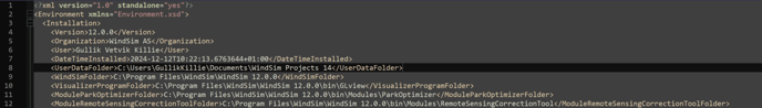 - Navigate to C:\Users\[user_name]\AppData\Roaming\WindSim\1200 and open Environment.xml file with notepad.