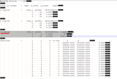The WindSim user can edit these lines to create different vertical grids. In the example below we have specified a uniform distribution of 20 cells up to 200m agl, and another 16 cells on top with arithmetic distribution (0.3) up to 4600m agl.