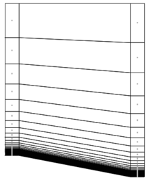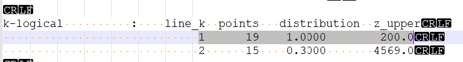 Each "line_k" represents a number of cells ("points", N+1) and their distribution ("distribution") up to a specified height ("z_upper"). In the syntax above the first line has 1 cell (N+1, 0+1 = 1) with uniform distribution at 2m height. The second line specifies 24 cells/points with arithmetical distribution (0.3) up to 1500m agl.