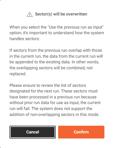 When using the 'Use the previous run as input' option it is important that the sector has a previous run to refer to. If not it will try to start the project and look for the earlier run.