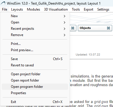 - Open WindSim 12 and go to file - > Open program folder